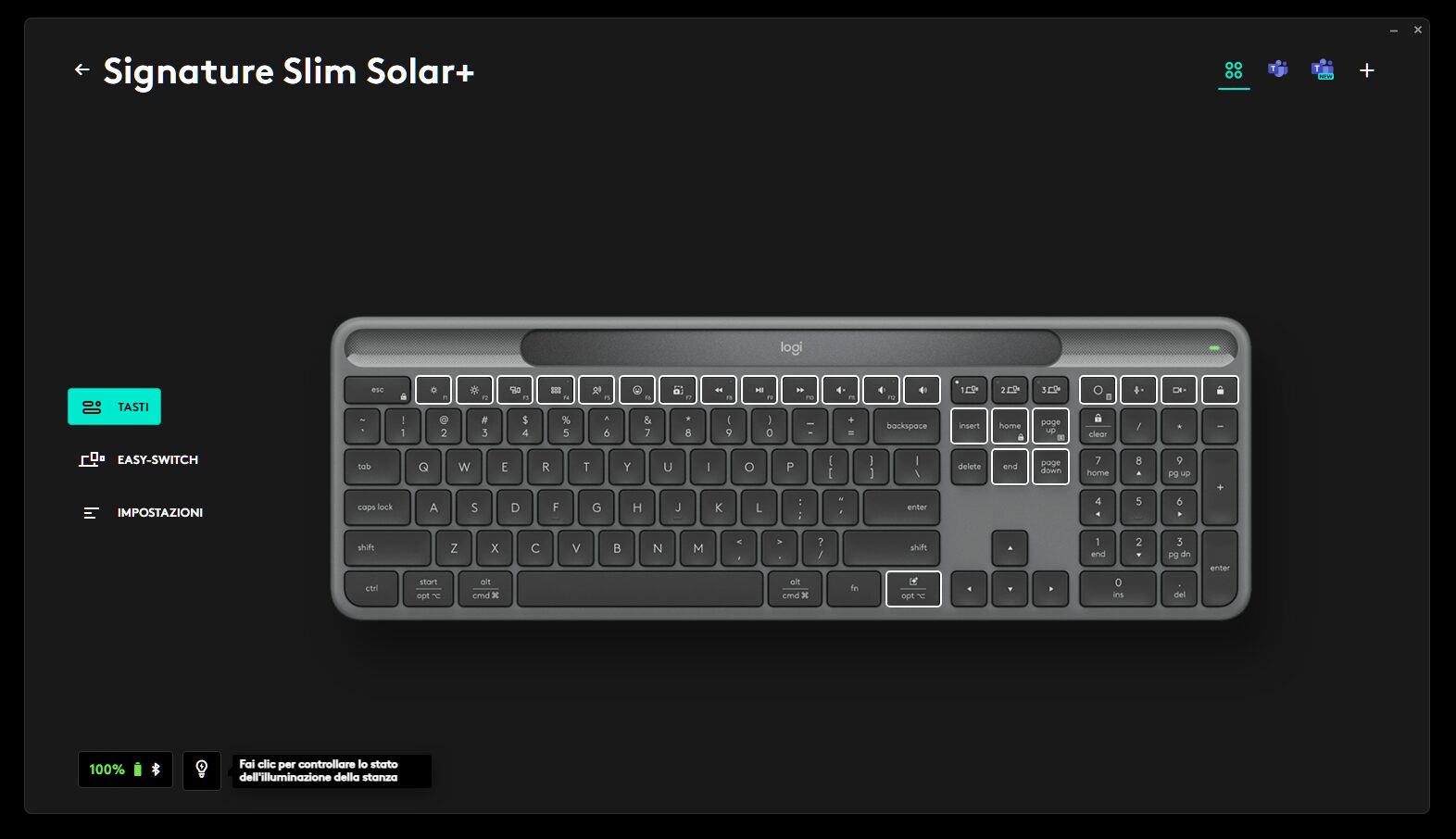 Lo stato della ricarica della K980 sarà possibile visualizzarlo su Options+, che permetterà anche di effettuare una rilevazione per controllare lo stato dell’illuminazione della stanza.